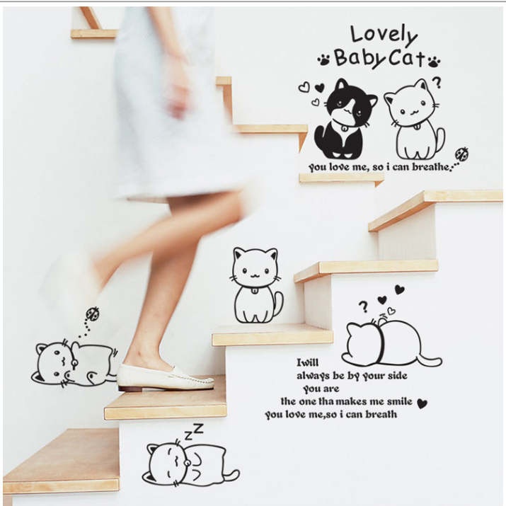 小猫墙上卡通卧室背景家居饰品墙壁装饰家装贴电视墙贴
